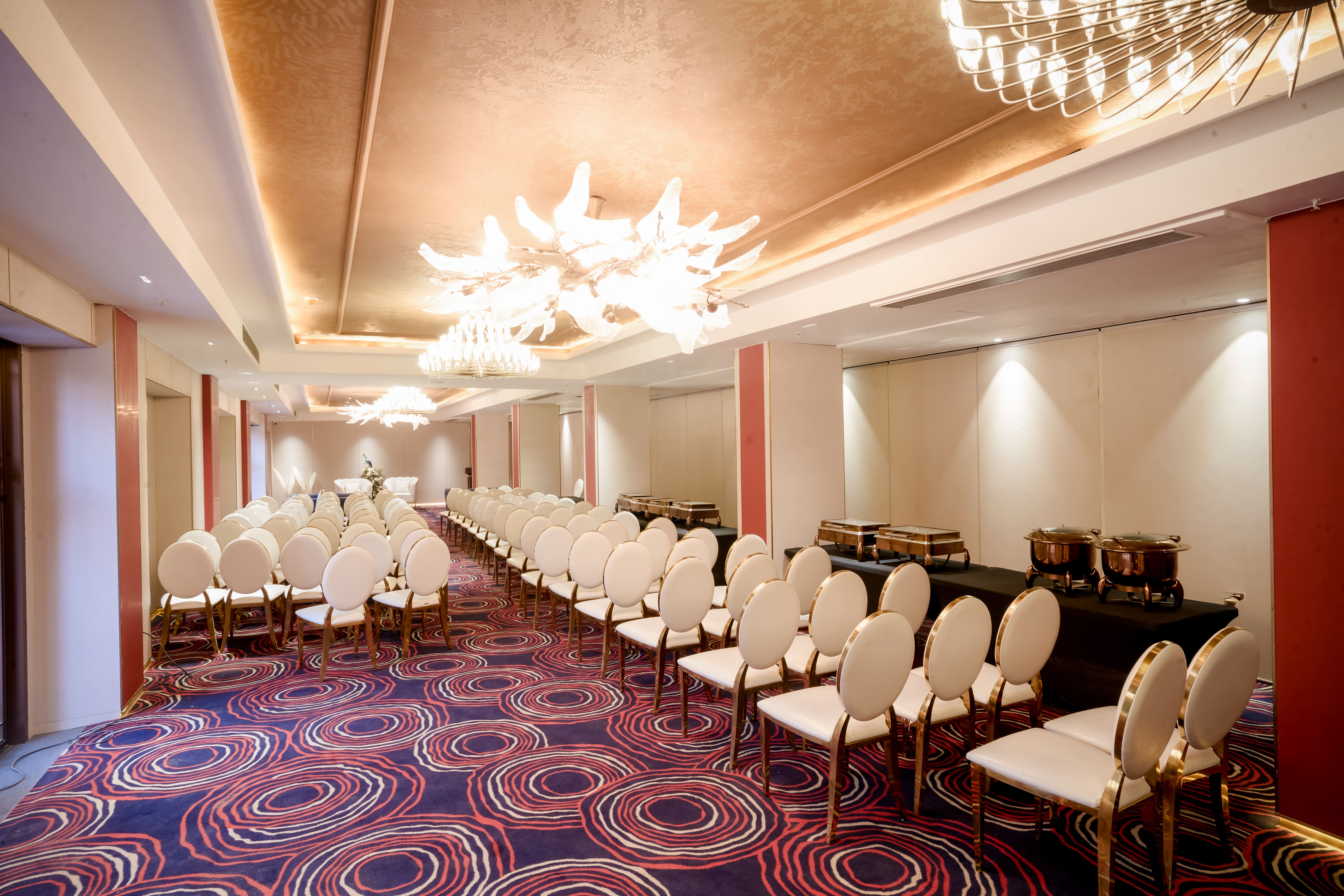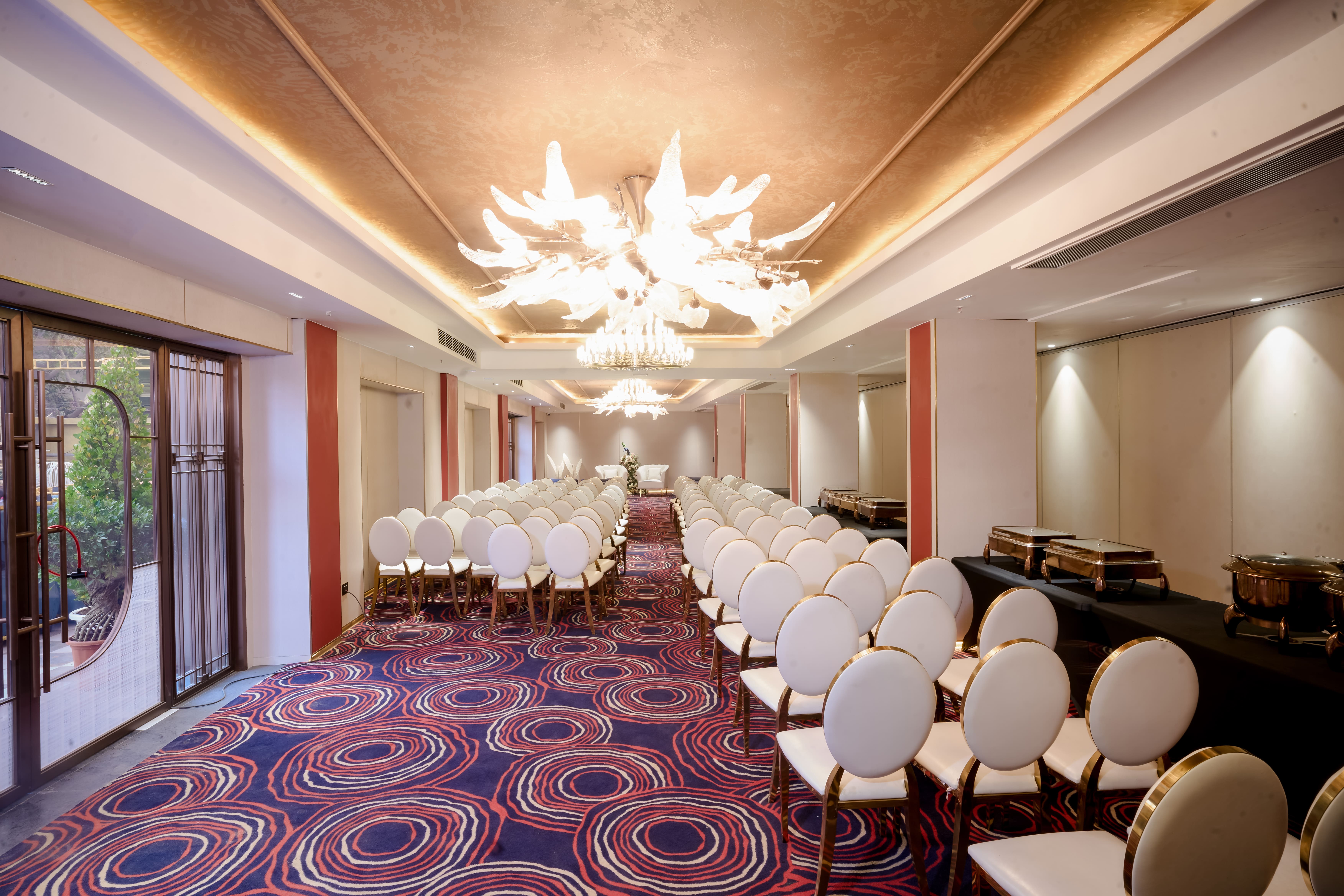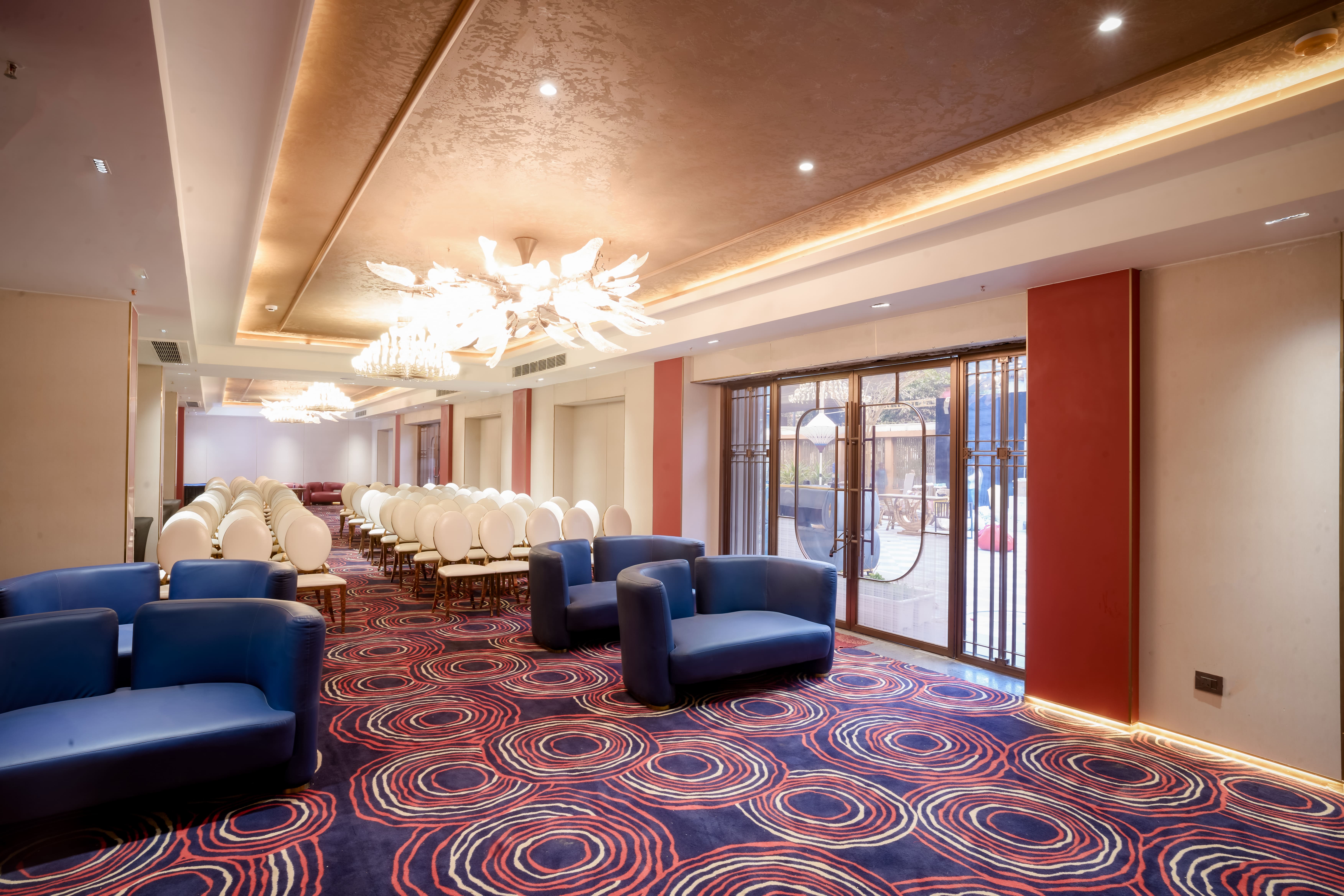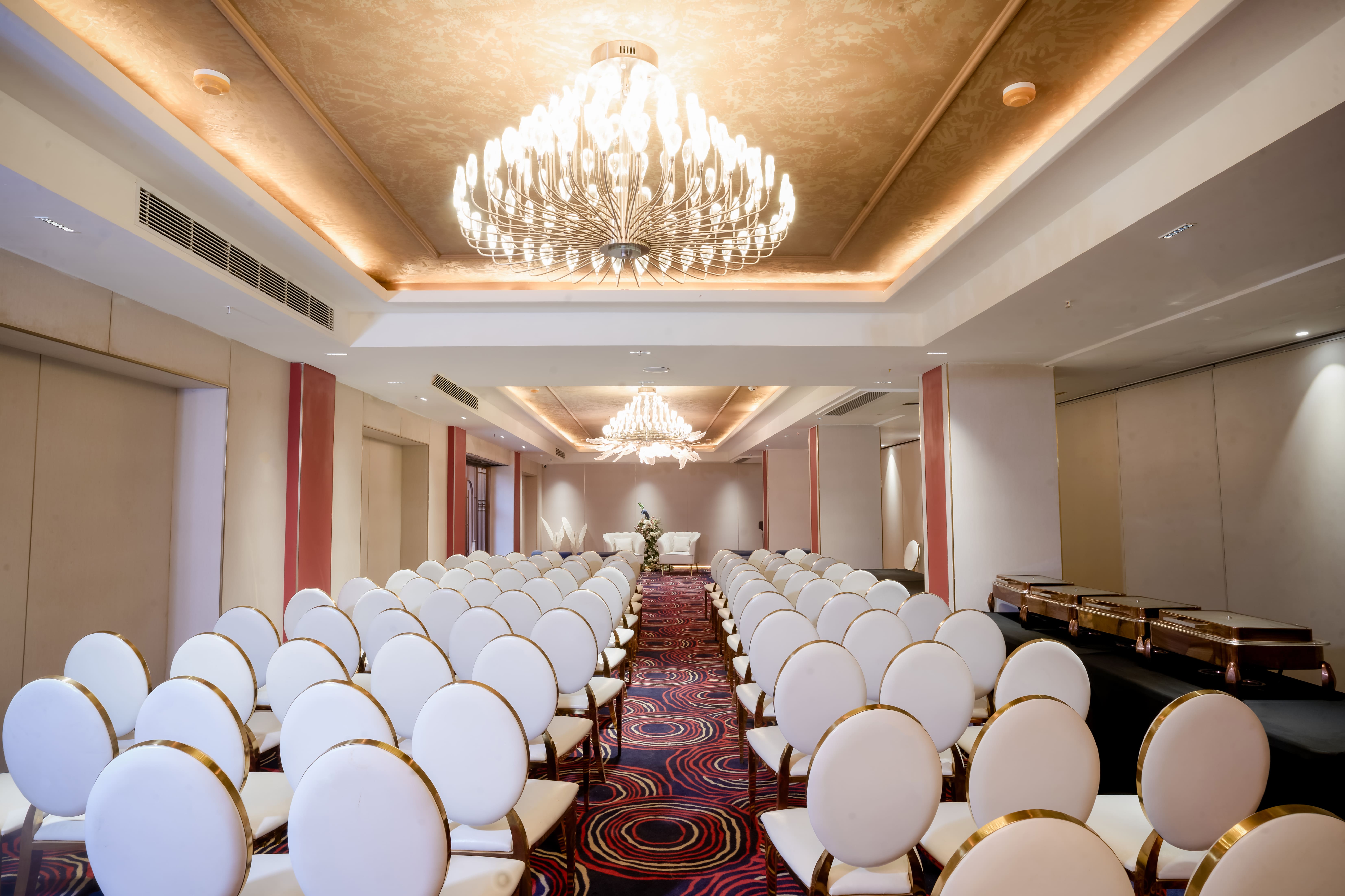 Gracefully positioned on the ground floor, Parna is an elegant banquet space designed for refined gatherings and intimate celebrations. With a capacity of 250 to 300 guests, it is ideally suited for weddings, receptions, engagement ceremonies, corporate meetings, and social functions. The venue features sophisticated interiors, flexible seating arrangements, and seamless accessibility, allowing for smooth event flow. Enhanced with customized décor options, modern audio-visual facilities, curated catering experiences, and attentive hospitality, Parna ensures every occasion is executed with finesse and effortless charm. .