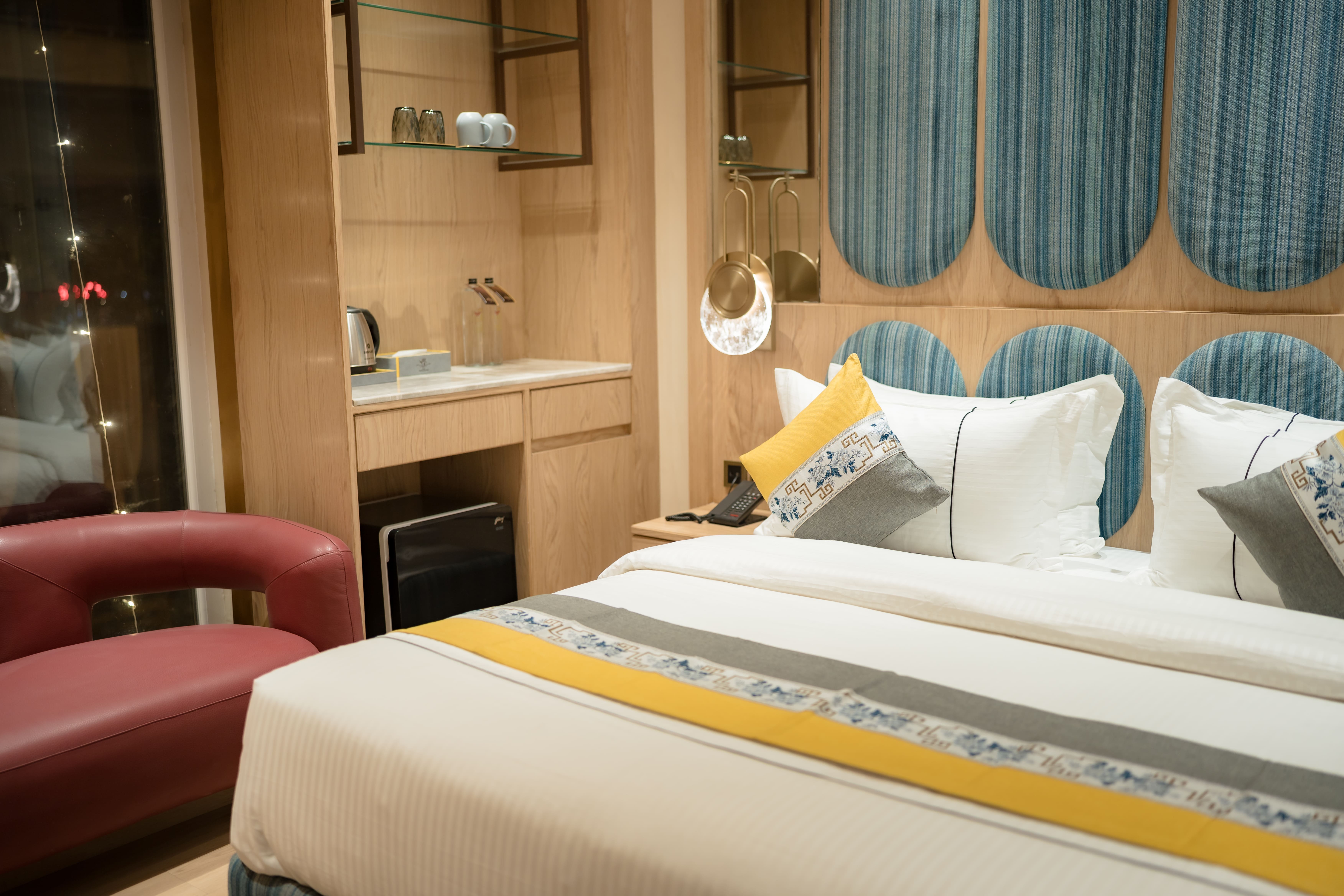 The Premiere Room at The Panache Kautilya is a refined sanctuary of comfort and understated elegance. Adorned with sophisticated interiors, plush furnishings, and warm ambient lighting, it creates an inviting space that reflects modern luxury. Every element is thoughtfully curated to offer a sense of calm and exclusivity. Designed for both business and leisure travelers, the room ensures seamless convenience with premium amenities and intuitive functionality. Its tranquil ambiance, combined with attention to detail, delivers a restful and elevated stay experience in the vibrant heart of Patna. .