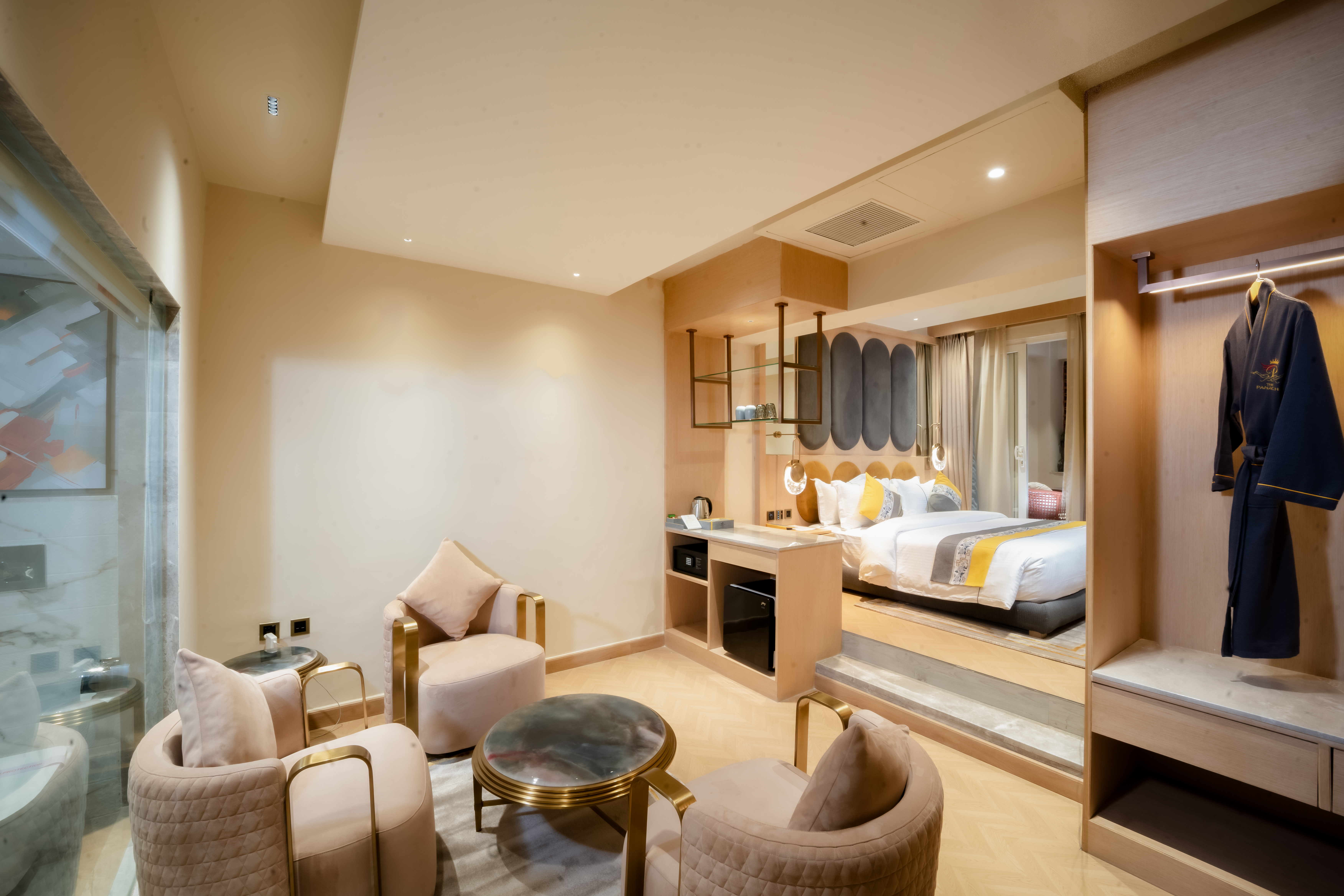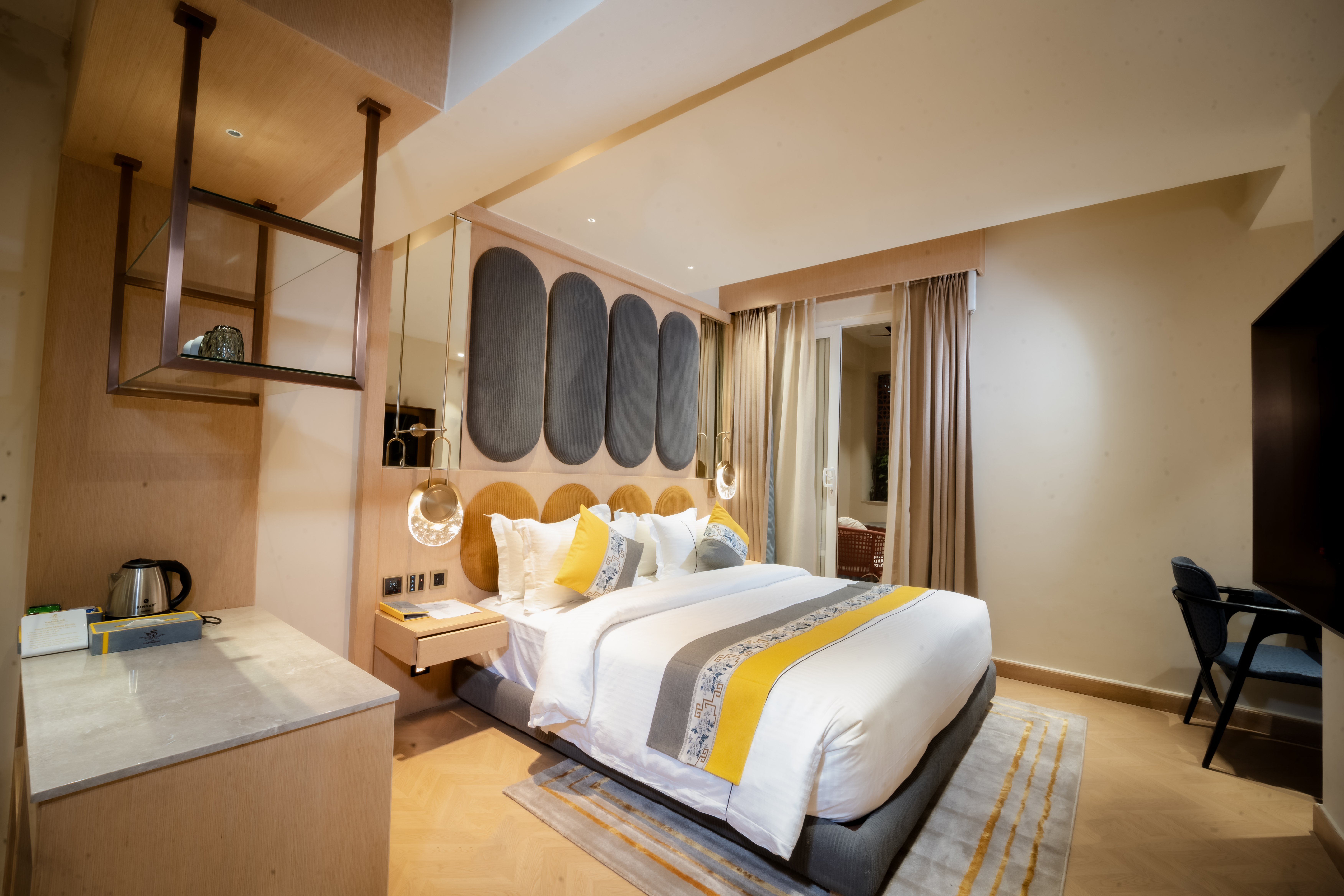 Gracefully designed, the Suite with Balcony offers an exquisite blend of luxury and openness. The interiors feature refined aesthetics, stylish furnishings, and a soothing color palette that enhances the overall ambiance. It is thoughtfully curated to provide both comfort and visual appeal. Step onto your private balcony to enjoy tranquil views and a refreshing connection to the outdoors. Perfect for those who appreciate indulgence with a touch of nature, this suite creates a harmonious and rejuvenating stay experience.